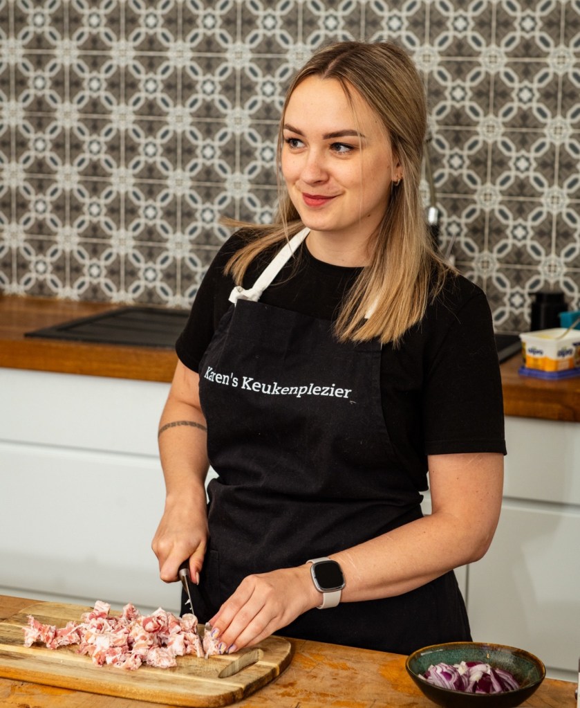 Ik ben Karen, 31 jaar, gepassioneerd door koken, geboren in Aalst en ondertussen bijna één jaar inwoner van Hamme. Al van jongs af aan vind ik mijn plezier in de keuken. Wat begon als gewoon meekijken wat mama allemaal doet in de keuken en nadien zelfs mee helpen koken voor ons gezin, groeide uit tot een echte passie – van het ontdekken van smaken tot het creëren van gerechten die mensen samenbrengen.